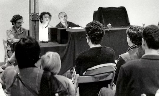 Investigación en la primera dimensión: Presentación / acción: “Cucurrucho contra el fantasma conceptual” Rafael Lamata, Jaime Vallaure, François Winberg y J.L Rodríguez de la flor.